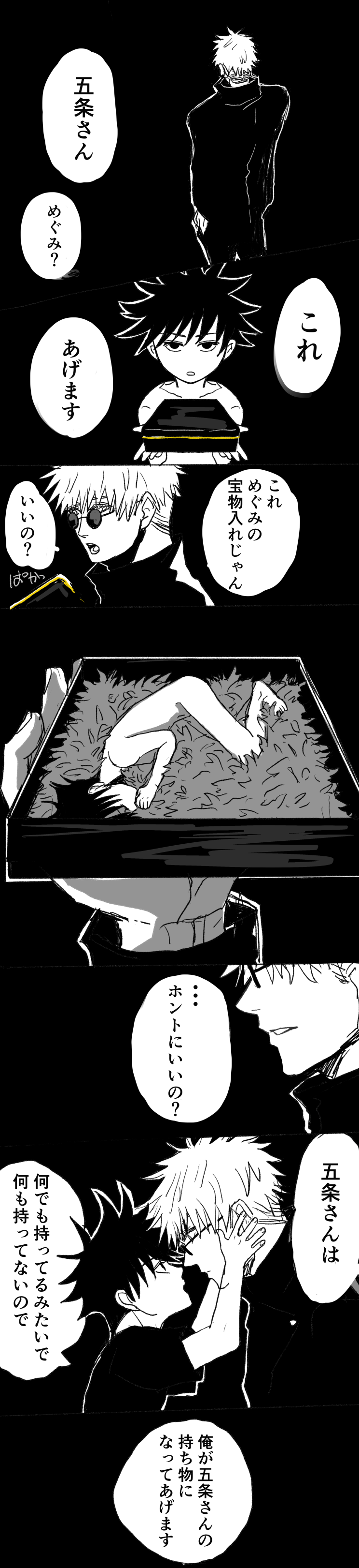 呪 五伏 呪専五と仔めぐみ 五伏 虎伏 宿伏 羅小黒 十二国記 WT 五伏 呪専五と仔めぐみ 歩み寄る師弟1歩み寄る師弟2歩み寄る師弟3歩み寄る師弟おまけめぐみが食べてる方が美味しそう524の日記念ネップリ12の新たなる式神大きい動物を洗いたい欲をさとるで満たすめぐみさとるが持ってきた黒毛和牛A5の証明書を見て哀しくなるめぐみ(その後美味しくいただきました)さとるが持ってきた黒毛和牛A5の証明書を見て哀しくなるめぐみ(その後美味しくいただきました)2星空散歩ポーズ集参照さしすと来たらおまわりさん、こっち見てる豆に当たらないと豪語したけど無下限を見せられないので自力で避けるさとる深夜の台所1深夜の台所2深夜の台所3初対面1初対面2初対面3モテモテふわふわいじちさん待ち1いじちさん待ち2海行こうか贅沢な伏黒家1贅沢な伏黒家2贅沢な伏黒家3かつての親友とまだ見ぬ親友1かつての親友とまだ見ぬ親友2かつての親友とまだ見ぬ親友3お迎えアイスアイス2禪院にて1禪院にて2禪院にて3禪院にて おまけほしいもの「私情です」までの道1「私情です」までの道2「私情です」までの道3「私情です」までの道 裏卒業指針1指針2 現在軸五伏 524の日!524の日イベントwebイベントでの私なでなで待ち五伏webイベントに入れなかった時の落書き タンバリン
